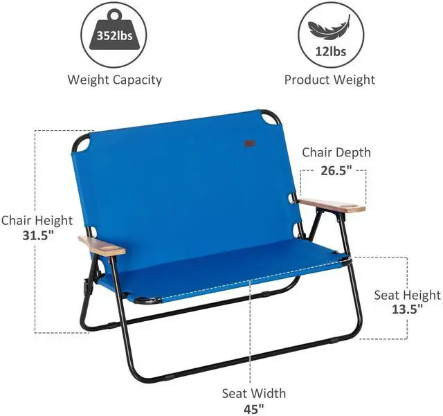 Pack less and bring more with Aosom. Aosom has a camping chair with a loveseat design to bring twice as many chairs in a single trip. Invite a friend; it seats two adults with a cupholder on each side. Capable of carrying 352 lbs. yet only weighing 12; bring it to a barbeque, camp, or picnic. It folds flat so that you can keep it in your trunk. Grab our folding loveseat by its handle, and you two are ready to go wherever the summer takes you. Get out, get comfy, get Aosom.