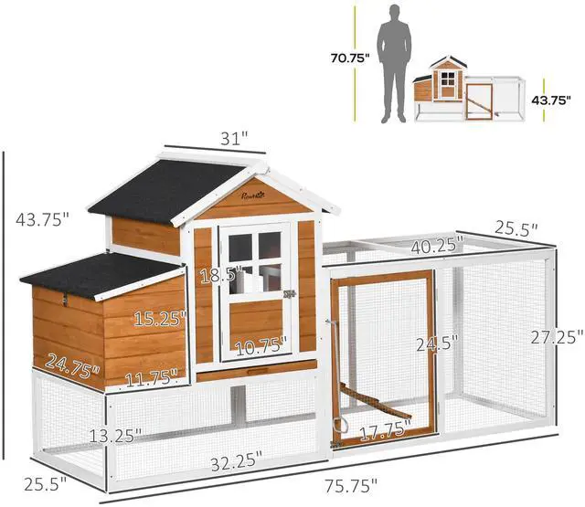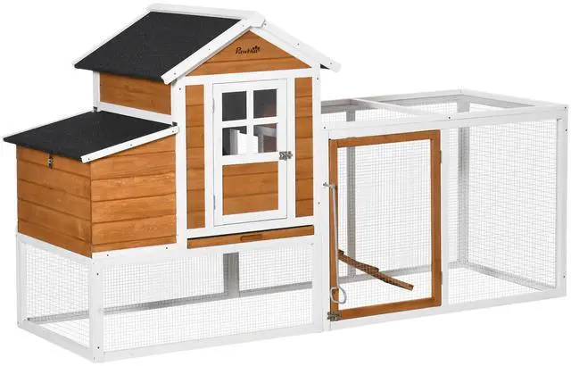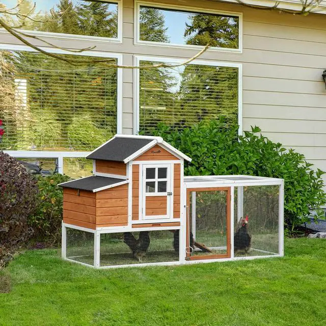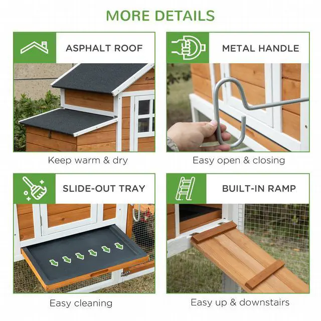 • Aosom 76" Wooden Chicken Coop with Safe and Healthy Non-Polluting Materials, Outdoor Hen House Poultry Cage with Weatherproof Materials