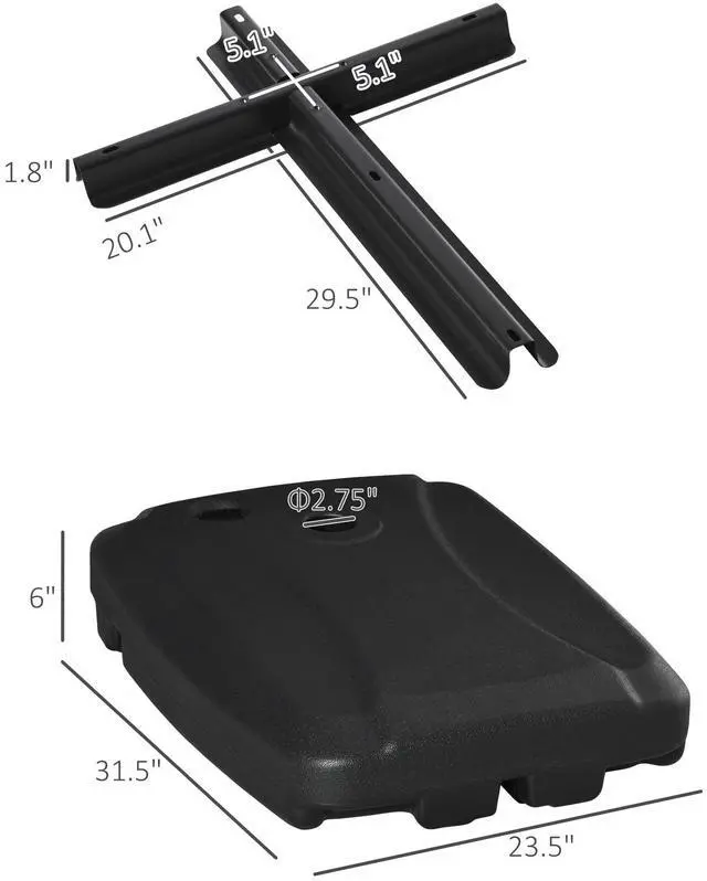 Keep your cantilever up and active with Aosom. A fully mobile model Aosom offers you an umbrella base that's heavy when you need it and light when you don't. Two wheels sit at the bottom of the base making your umbrella mobile, too, allowing you to rearrange your yard or bring it back in for the season. Easy to fill and easy to drain, you can offer weight levels of 132, 150, or even 165 lbs. with sand and water. Heavy-duty yet easy to handle, this is the umbrella base with options.