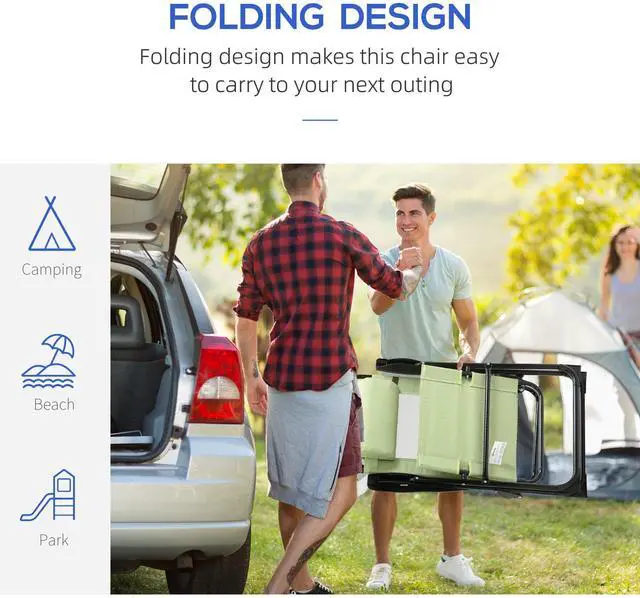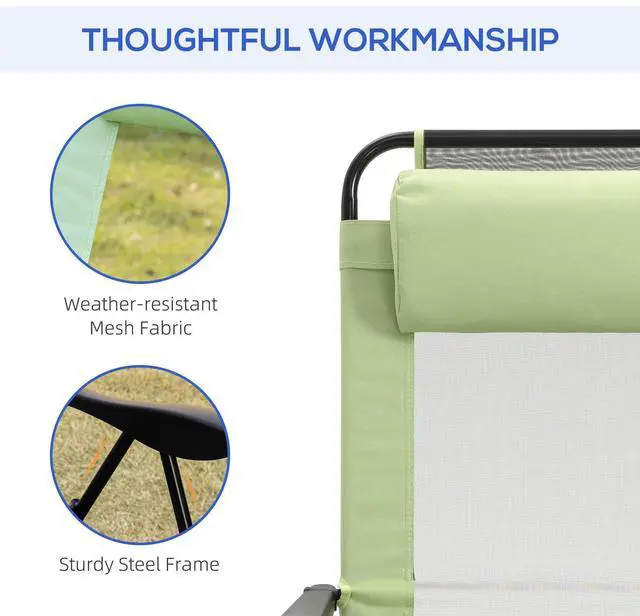 Let the day's stress drift away with this reclining chair by Aosom! This recliner adjusts to 5 different positions for the ultimate relaxtion. Equipped with weather-resistant mesh fabric for high breathability and comfort. Foldable design ensure easy transport. This multi-functional chair is suitable for both outdoor patio, camping and indoor home napping.