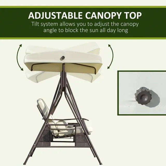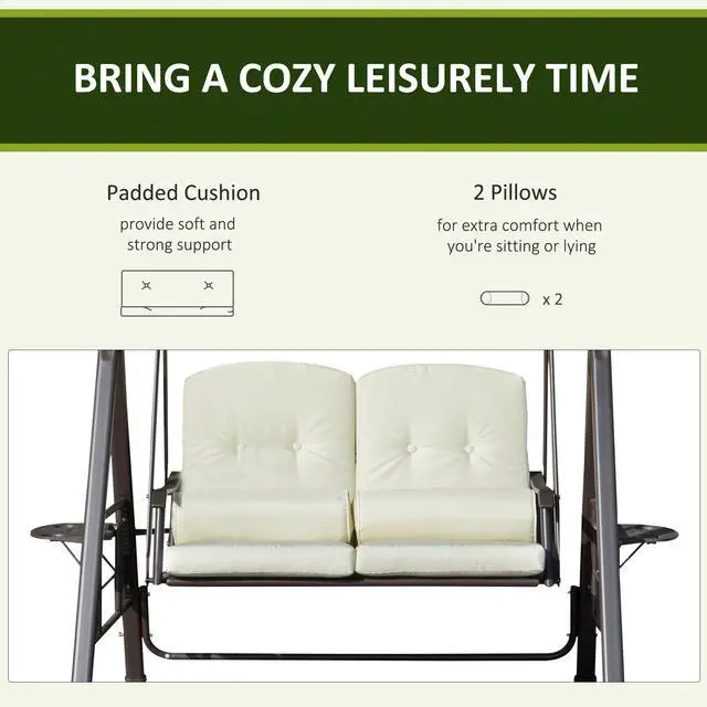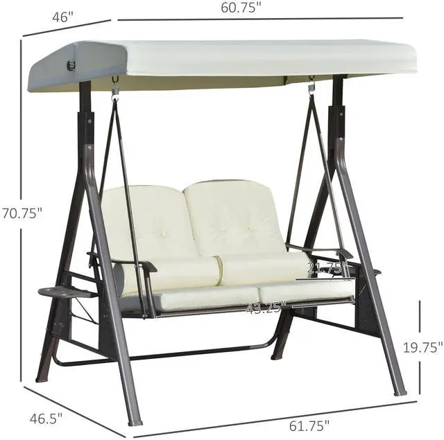 Aosom has a comfy porch swing that adds plush sitting space to any outdoor place. Featuring thickly padded cushions and throw pillows, sit in style. The side features form-fitting armrests and a cup holder tray for drinks and belongings. Tilt the adjustable canopy to get rid of glare from any angle. Use it to stay cool and comfortable as you swing through the summer breeze. So grab some friends and maybe some lemonade; it's going to be a great summer.
