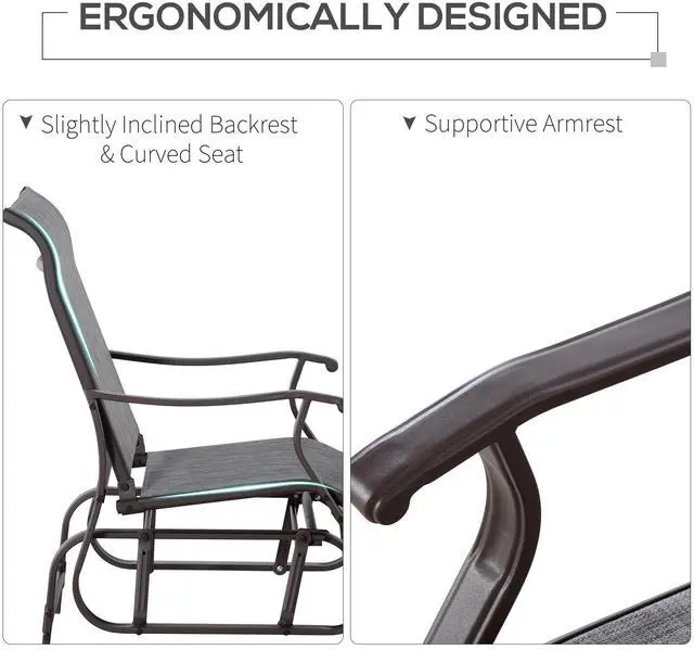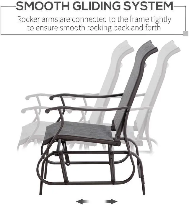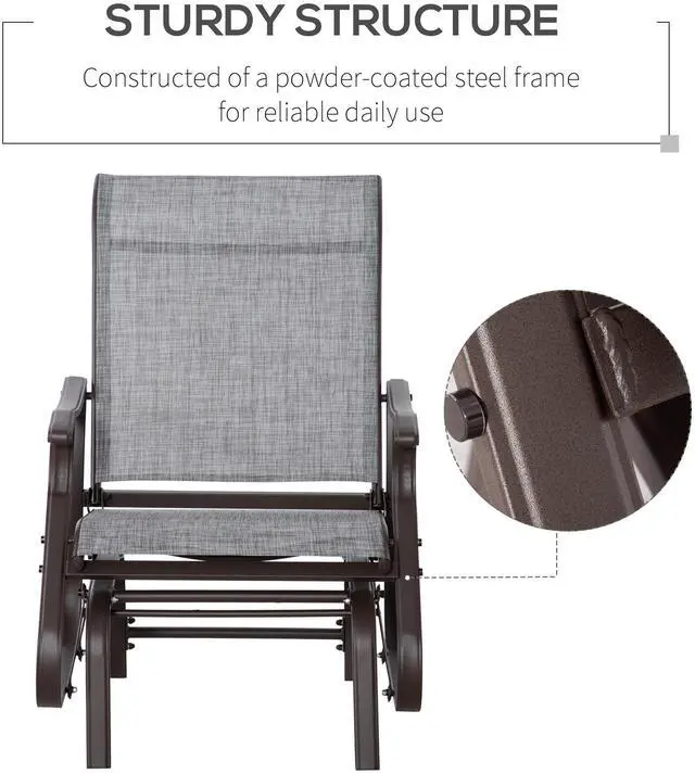 • Aosom Outdoor Glider Chair, Gliders for Outside Patio with Steel Frame and Mesh Fabric for Backyard, Garden, and Porch, Gray