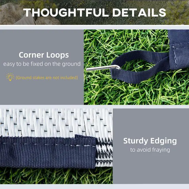 • Aosom Reversible Outdoor Rug, 9' x 12' Waterproof Plastic Straw Floor Mat, Portable RV Camping Carpet, Large Floor Mat for Backyard, Deck, Picnic, Beach, Blue & White