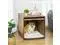 The reduced lighting and covered interior of this small crate for dogs is well-fit for frequent barkers and anxious dogs. The cushioned inside offers a sleep surface that's soft with fleece to ensure warmth. The door folds upward and slides in underneath the top, which keeps it from hitting the wall and chipping paint. When you have to deal with small spaces, a door that slides inward can help. Use this Aosom wooden dog crate as an end table for mugs and plates. It's a coffee table, too.