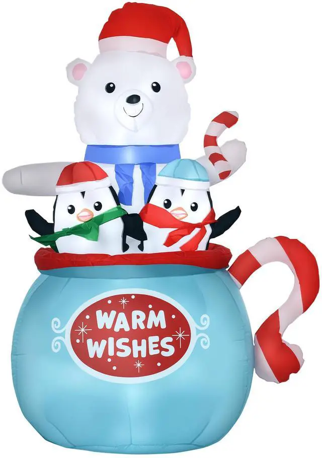 - - Bear and penguins in the cup inflatable brings a cohesive Christmas display together