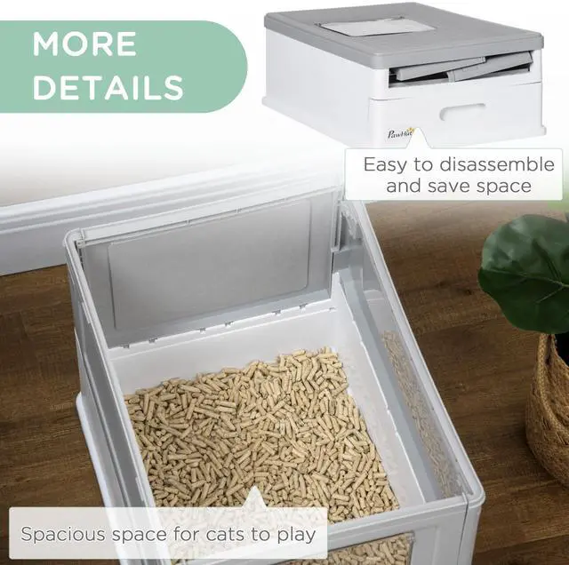 • Aosom Fully Enclosed Cat Litter Box with Front Entry and Top Exit, Plastic, Gray & White