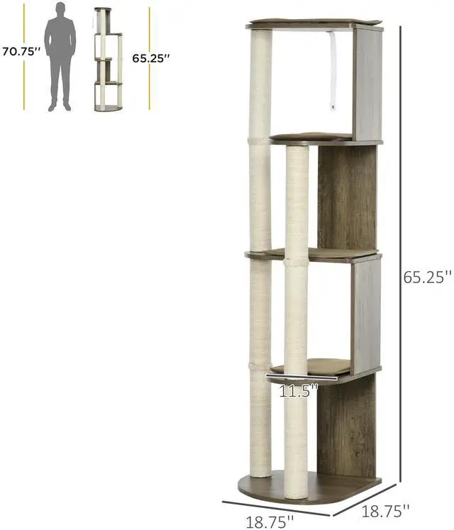This Aosom cat tree is a multi-tiered structure designed for cats to climb, play, scratch, and rest. Made from sturdy materials like wood, sisal, and carpet, it typically features platforms, enclosed spaces, scratching posts, and hanging toys. Cat trees satisfy a cat's instinctual need to climb and scratch, provide a safe haven, and help prevent damage to household furniture. Ideal for keeping indoor cats active and entertained.