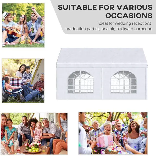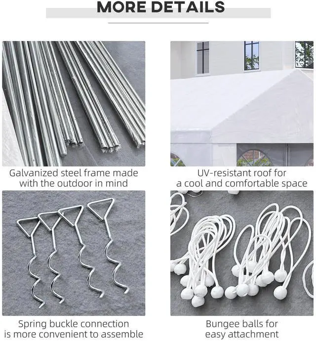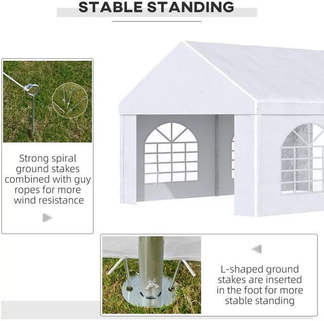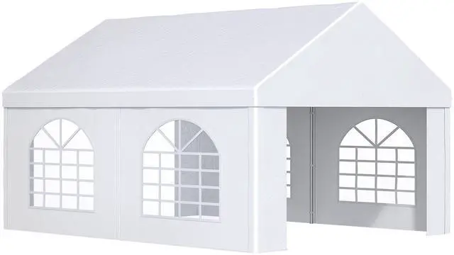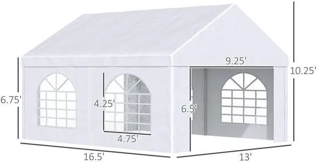 Aosom's 13' x 16.5' carport and party tent can protect your project car and transform any outdoor area into a unique event space. Excellent for wedding receptions, graduation parties, or extra-large barbeques, it offers four stylish cathedral-esque windows. Excellent for small-to-medium cars, boats, furniture, and tools, it stops sun damage and sunburns alike. Made of a galvanized steel frame selected to withstand warping, Aosom's canopy tent provides portable protection.