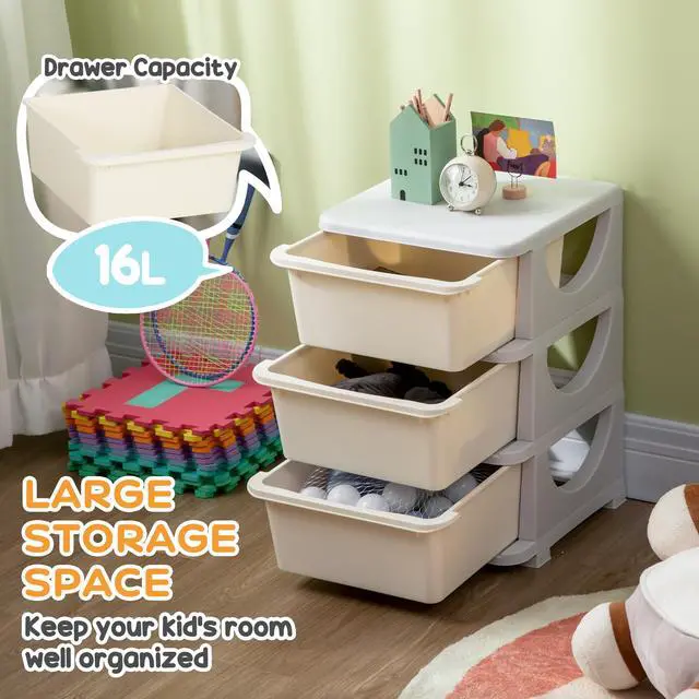 Space can be precious, and this minimalistic design from Qaba allows homes with limited extra room for furniture to accommodate them. The large removable bins will make items easy to access, so when a kid can't find something, they can search the boxes without having to stick their hand in the back of the drawer where they can't see. These containers are made for simplicity, storage, and a smooth, cleanable surface.