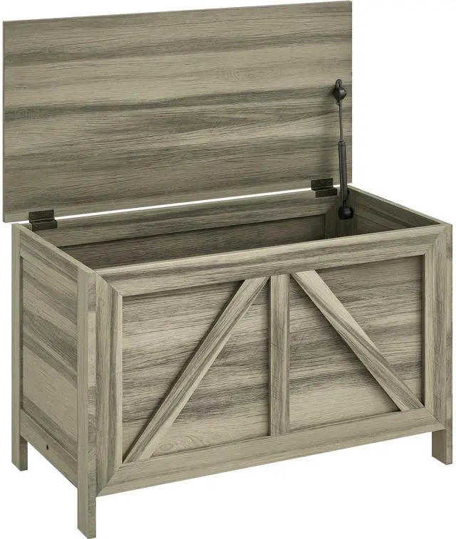 - - Farmhouse style makes this storage chest a low-key statement