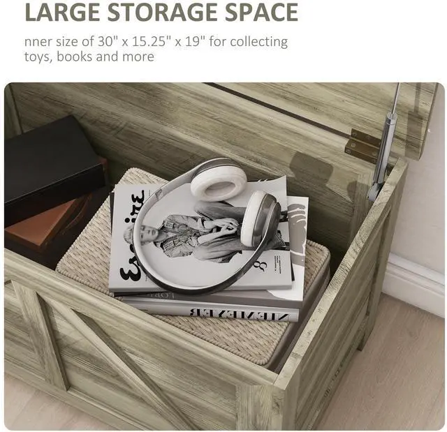 This storage box with lid stands out for a farmhouse design and can fit into various decorations. It features a large storage section to store books, blankets, and more. Its versatile design makes it a practical entryway shoe cabinet, a toolbox organizer, or a standalone storage cabinet. Make your house a home with Aosom storage boxes.