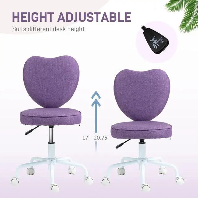 Choose this purple heart desk chair from Aosom for your next home office space. You can adjust the height of the small office chair seat to achieve your most comfortable experience. Made of soft foam and covered with linen, this chair for desk offers extreme comfort and a soft touch. If you want to get something during work, you don't have to stand up as the 360-degree rotating wheels promise you an easy and quick movement.