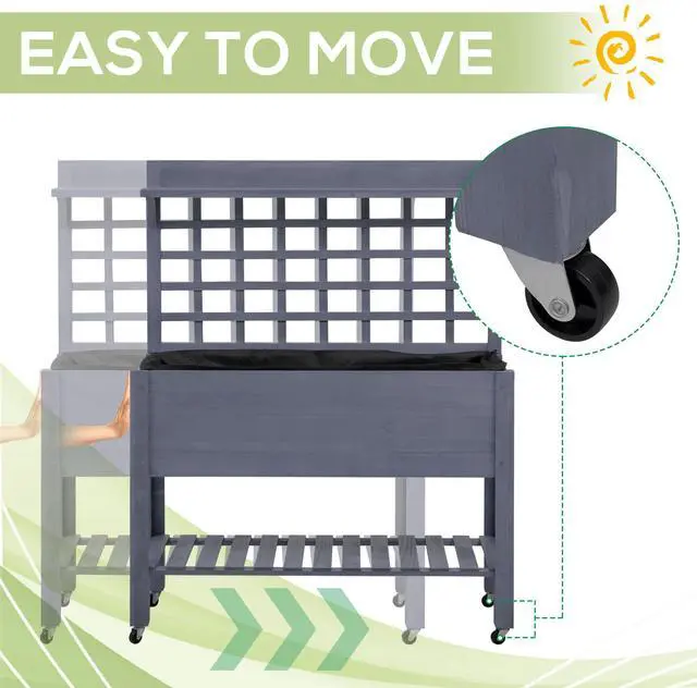 Let natural beauty lead the way in your garden with this raised garden box from Aosom. The three-tier design of our raised garden bed with wheels ensures flowers, vegetables, and herbs have plenty of room to grow and flourish. The decorative back grid of the raised bed planter is perfect for climbing vines, or hanging lights and other decorations. Finally, with wheels on each leg, the cedar raised garden bed is easy to move to anywhere you need it.