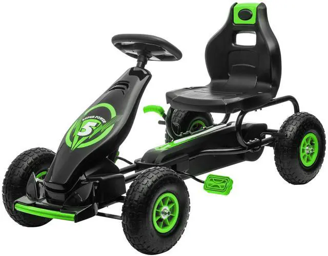 Aosom is here to upgrade the way your child plays outside. They won't want to get off this ultra-fun racecar-style go kart for kids. The ergonomic comfort of the seat will keep them feeling excellent throughout long periods of entertainment. Our childrens pedal car is extra resilient with tough, wear-resistant tread that lets little ones cover a wide variety of terrain, while shock absorption keeps the ride smooth for better movement.