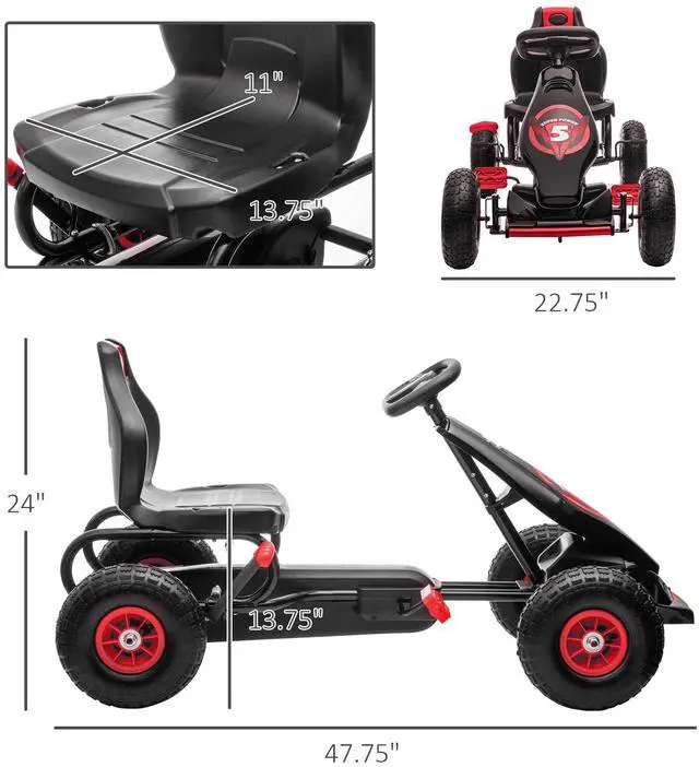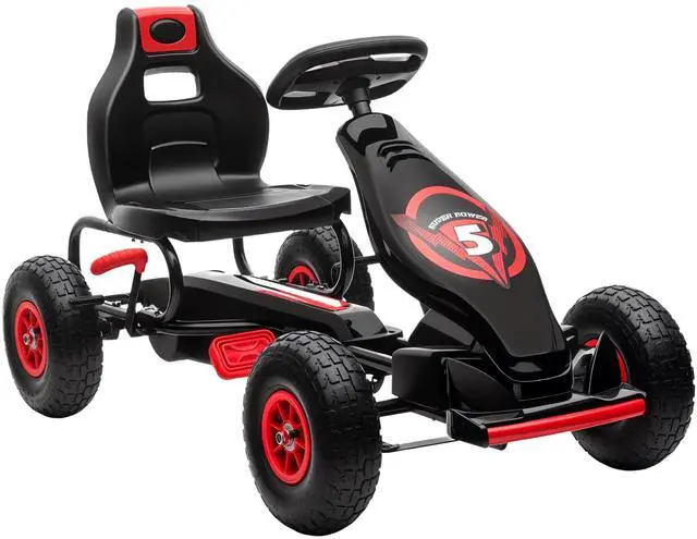 Aosom is here to upgrade the way your child plays outside. They won't want to get off this ultra-fun racecar-style go kart for kids. The ergonomic comfort of the seat will keep them feeling excellent throughout long periods of entertainment. Our childrens pedal car is extra resilient with tough, wear-resistant tread that lets little ones cover a wide variety of terrain, while shock absorption keeps the ride smooth for better movement.