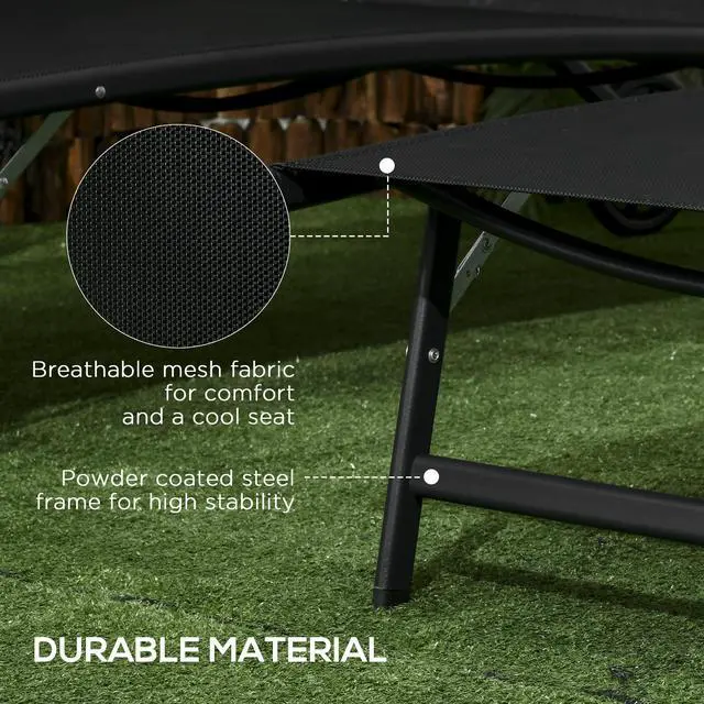 Soak up the summer sun with a friend and Aosom. Aosom has a two-piece outdoor lounge chair set that adds instant tanning space to your pool. Recline to five positions, including flat, and find your favorite tanning angle. Pool water is no match for our outdoor chaise chairs' powder-coated frames. They're lightweight and can be wheeled wherever you want them. A mesh surface makes our pool chairs cool chairs with pleasant airflow and a quick-drying design. Get out, get comfy, get Aosom.