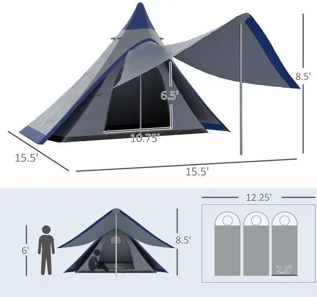 Our camp tent for adults sets up fast for waterproof sleeping quarters in a cinch. An extended canopy offers you a space outside that's free from sunburns and rain. The protective floor and tough walls ensure a 2000mm waterproof rating to outlast downpours. When you're done, the convenient carrying bag lets you take it on the road effortlessly. Get out, get comfortable, get Aosom.