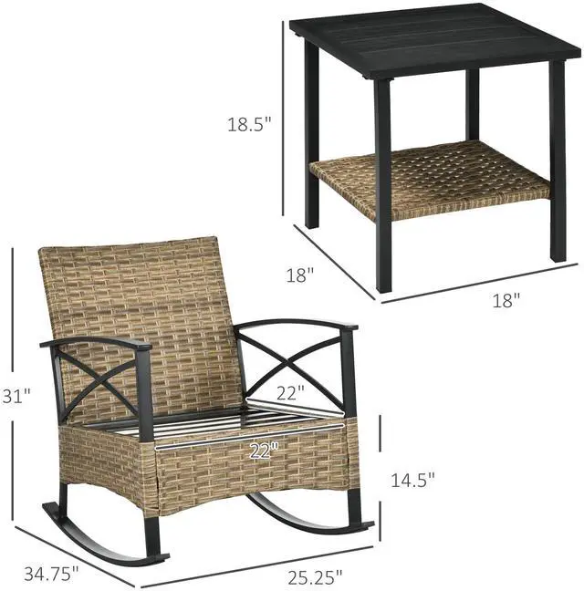 Aosom offers a three-piece front porch furniture set to help you rock and relax with a friend. With two rocking chairs, enjoy the comforts of inside and outside in cushioned comfort. They're easy on the eyes, too, with a button-tufted look and "X" motifs along the curved armrests. A two-tier coffee table lets you enjoy dinner, drinks, or a game. Placed on the porch or patio, the porch furniture set offers a hand-woven style with water resistance. Get out, get comfy, get Aosom.