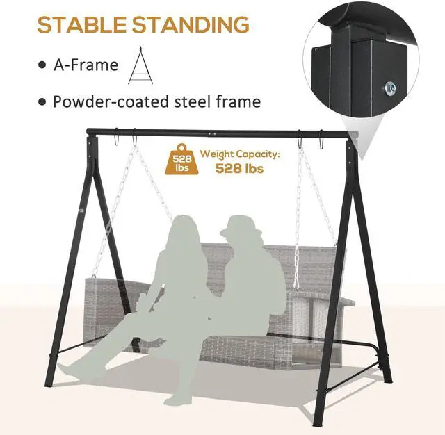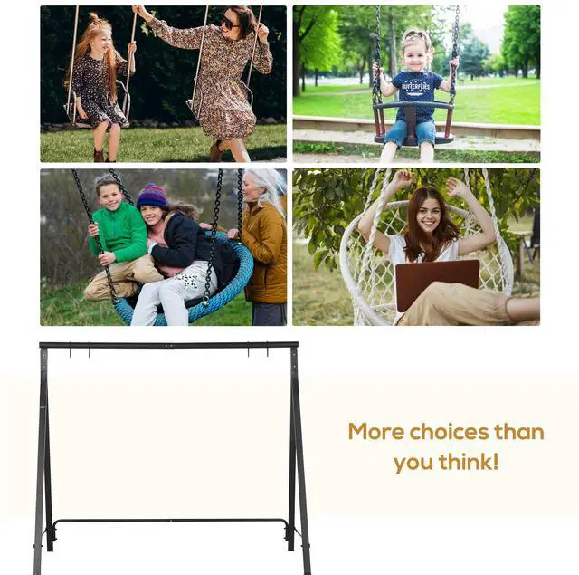 Transform your outdoor space into a haven of elaxation with the Aosom metal swing frame, designed for people who cherish quality time together. This elegant structure, crafted from water-resistant powder-coated steel, promises durability and sophistication, supporting up to 528 lbs. Imagine weekends spent gently swaying on a plush three-seater swing, surrounded by laughter and tranquility. With customizable colors and features, this swing set not only enhances your garden's aesthetic but also elevates your family's lifestyle.