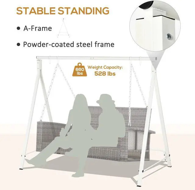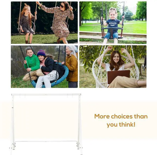 Transform your outdoor space into a haven of elaxation with the Aosom metal swing frame, designed for people who cherish quality time together. This elegant structure, crafted from water-resistant powder-coated steel, promises durability and sophistication, supporting up to 528 lbs. Imagine weekends spent gently swaying on a plush three-seater swing, surrounded by laughter and tranquility. With customizable colors and features, this swing set not only enhances your garden's aesthetic but also elevates your family's lifestyle.