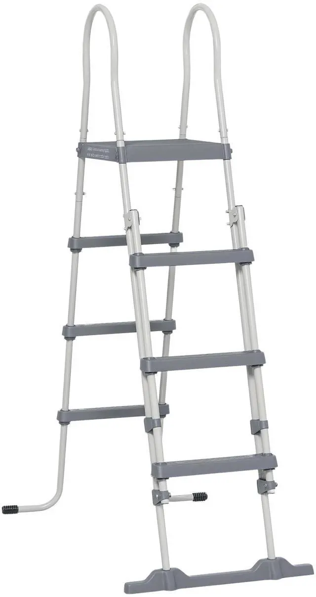 Aosom is here to offer you and your family poolside safety and ease of entry. Designed for above-ground swimming pools up to 48" deep, our steel ladder is double water protected with a powder-coated galvanized steel frame. The steps are textured for a good grip, and handrails on the side help you get in the pool with less likeliness that you'll slip. When you're away, make sure it's safe for children to play, when you lock our ladder up and away. Get out, get safe, get Aosom.