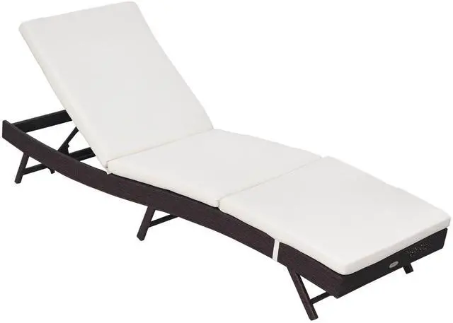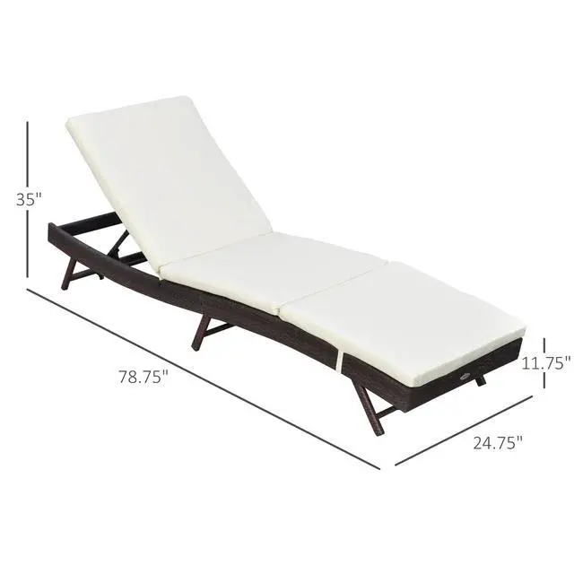 When it's time to relax, you know you want to go all out. That's why our outdoor lounge chair offers a fully cushioned surface. It's comfortably curved and has a backrest that adjusts to five positions. Find your favorite tanning angle or lay down by the pool as you dream of floating away on a cloud. With handwoven rattan accents, it's comfortable to the eyes, too, bringing a tropical motif to your porch, patio, or poolside. Enjoy your time outside. Get out, get comfy, get Aosom.