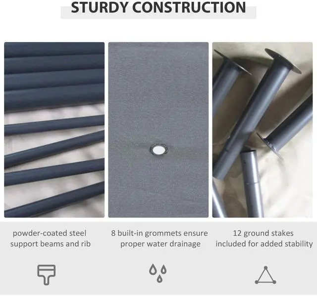 Looking for a portable, reusable outdoor option for your next garden party or picnic plan? Just need a little protection for your patio? Aosom has the gazebo that's got you covered. The PA-coated polyester canopy prevents UV from hurting friends and furniture by blocking UV. The six sidewalls let you master the elements keeping out harsh winds, glare, and unwanted guests with wings. Keep your plans firmly planted on soft ground with twelve included stakes. This is the canopy that can.