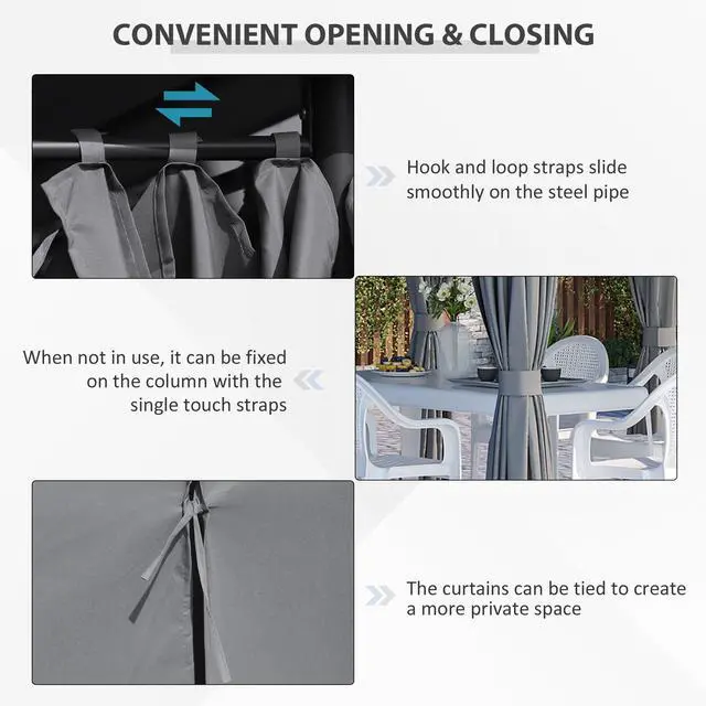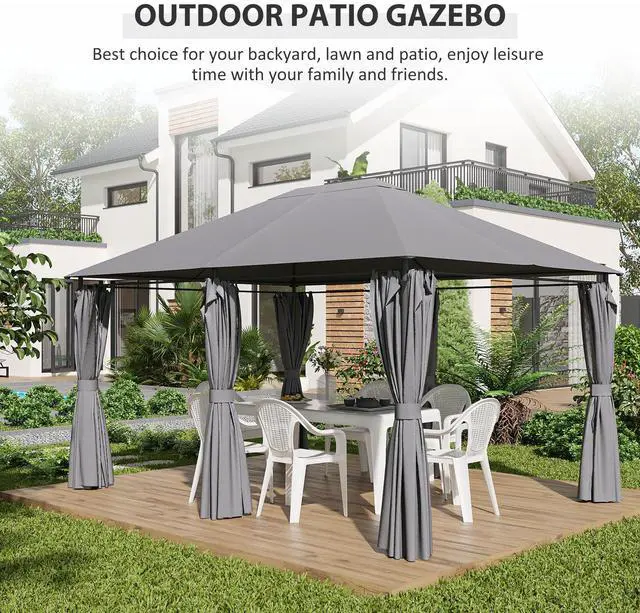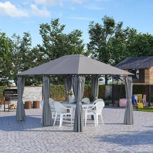 • Aosom 10' x 13' Outdoor Patio Gazebo, Canopy Shelter with 6 Removable Sidewalls & Steel Frame for Garden, Lawn, Backyard & Deck, Gray