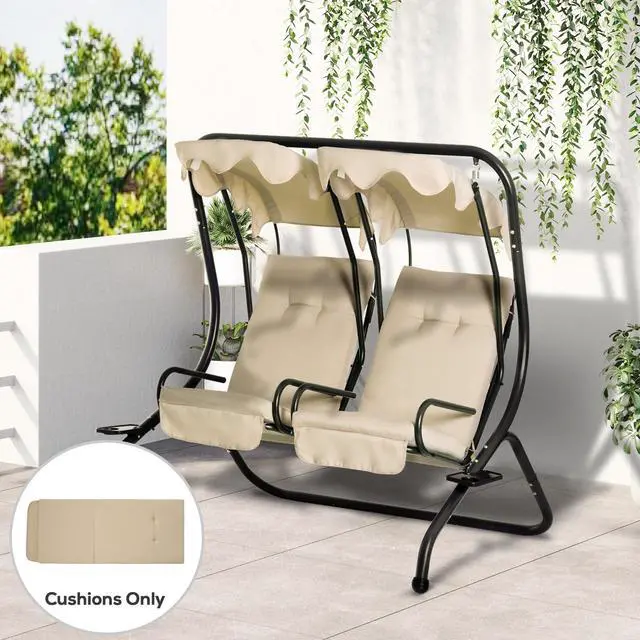 Aosom has a set of patio swing cushions you can use as a replacement or an add-on. Each cushion is filled with 2" of thick and squishy foam to make any surface soft. To the sides to can find ties that make our replacement cushions stay in place, so you won't have to slide around, spend time looking for them in the wind. With elegant tufted charm, you can bring indoor comfort outside with Aosom.