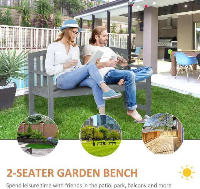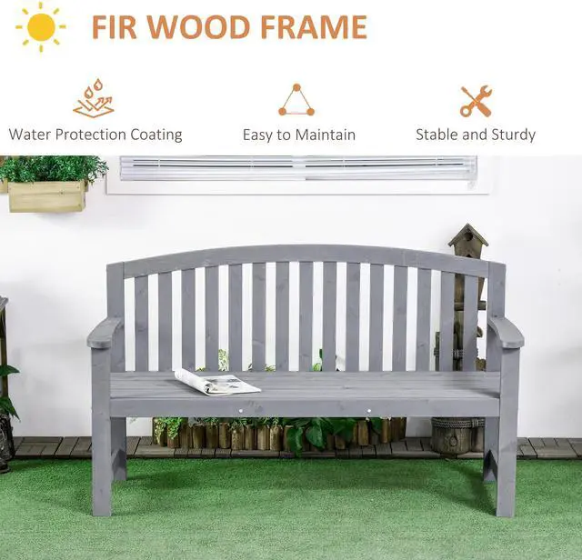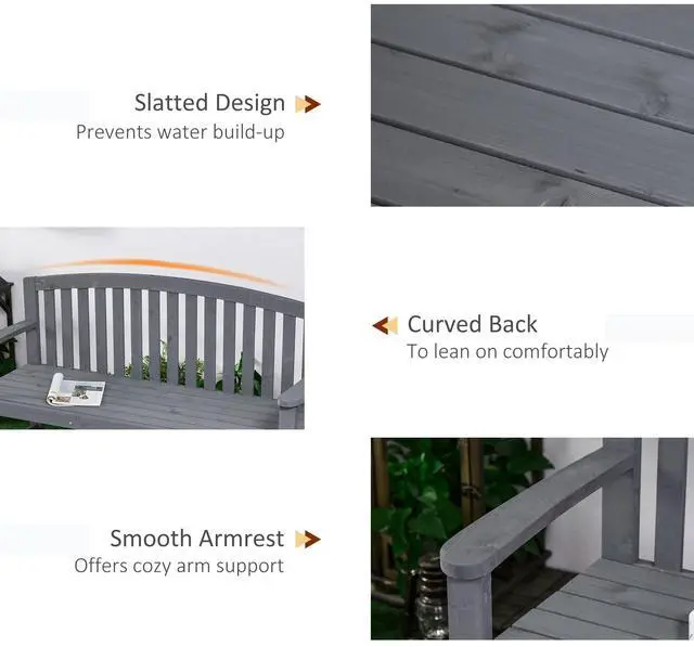 With a slatted seat, backrest and armrests to the side, this classic wooden garden bench is a rustic centerpiece that brings both form and function to your outdoor area. It features an elegant fir wood frame made outdoor ready with a water-resistant paint. Not only does this paint let you set your bench on the porch with little to no maintenance, it also shows the beauty of the natural wood grain. Keeping cool in the sun and draining away rain, it helps you enjoy the outdoors even more.
