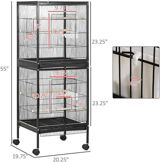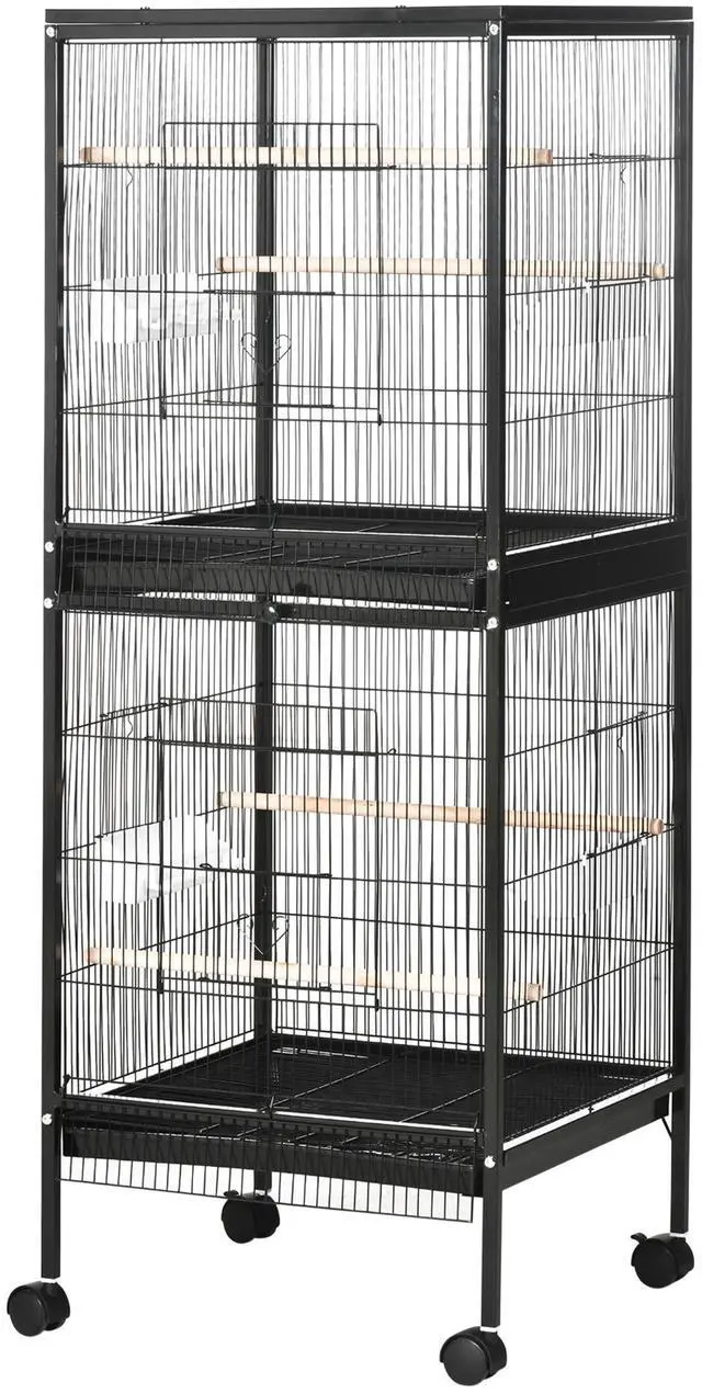 Birds need space for their wingspan, and this double bird cage allows impressive amounts of room from left to right, offering a distance that's wide for a homey environment. The doors on all sides allow easy access wherever you're coming from, making feeding quick and easy when you're on the go. This metal bird cage offers plenty of living space and room for activity. Keep your animals safe and happy with this indoor aviary from Aosom.