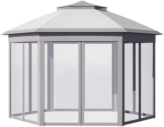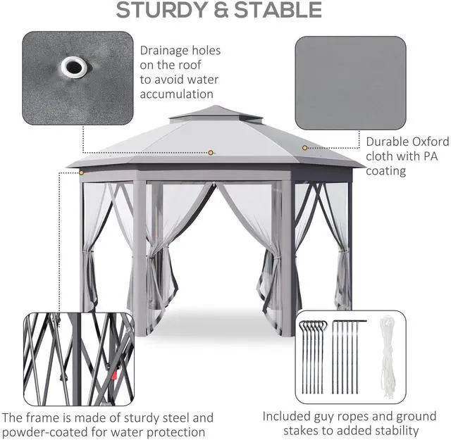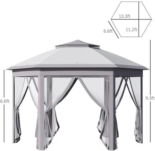 - - Extended two-tier hexagon roof provides elegance and extra wind protection