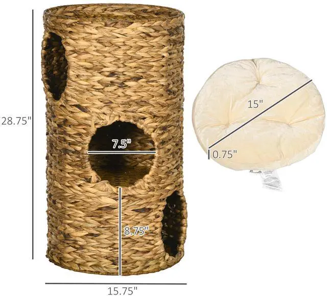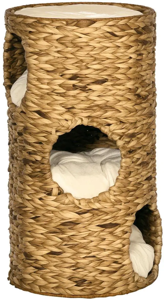 Save space and offer your cat the height they love to hang in. Hand-woven from natural water hyacinth, our cat condos for indoor cats offer a stacked design with four layers, accommodating multiple kitties or giving one extra room. This four-story cat zone features three hideaways tucked away behind 7.5" holes, enhancing the comfort of cat naps and creating a hidden feel all feline friends are drawn to. Upgrade your fur baby's naps with Aosom.