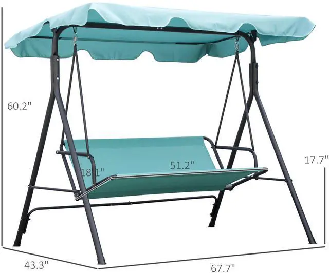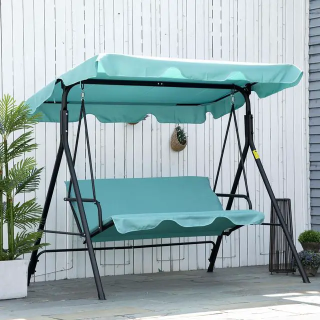 Swing through the summer on an Aosom patio swing. Made with a heavy-duty steel frame crafted into a stable A-shape, and featuring soft, thick cushions, it seats three adults. Place it in outdoor spaces like the porch, by the poolside, garden, backyard, or on the balcony. It features an adjustable canopy that lets you swing even if there's light rain. Tilt the top so you can stop sunburns and get rid of glare. Enjoy gently swaying in the breeze with a friend; summer's going to be great.