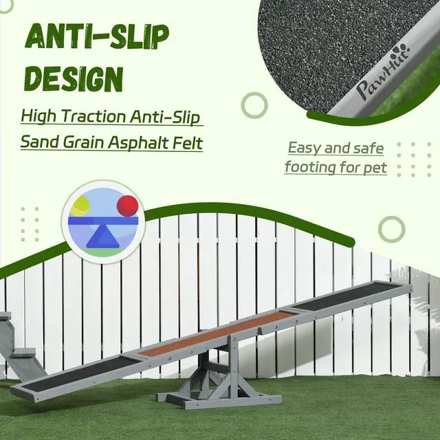 The Aosom dog agility seesaw gives your dog an outlet for exercise. Our dog agility set has an anti-slip surface to help with grip while your pet balances. Our agility equipment can help build your pet's confidence, training, obedience, and help keep them in shape. A small, medium or large-sized dog can enjoy our agility equipment. Our seesaw is designed for dogs up to 66 lbs., making it suitable for most dog breeds.