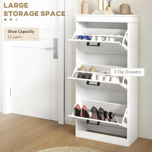 - - Store up to 15 pairs of shoes in three tilt-out drawers