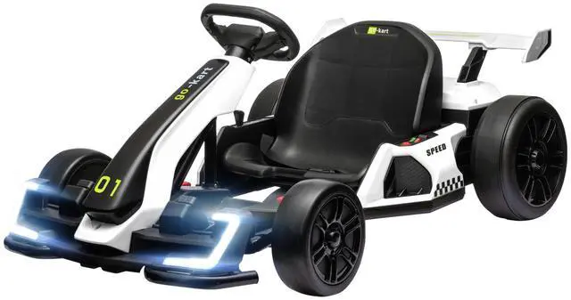 Ignite boundless outdoor excitement with our Aosom electric go-kart. Your young speedster will experience the thrill of a lifetime as they drift and race. Equipped with a powerful 24V dual-drive motor, they'll conquer speeds up to 7.5 mph, fostering a sense of adventure. Bring greater immersion with a realistic horn and music controls for realism in every ride. Elevate playtime with a superior ride-on experience, spark imagination, and raise the hype factor.