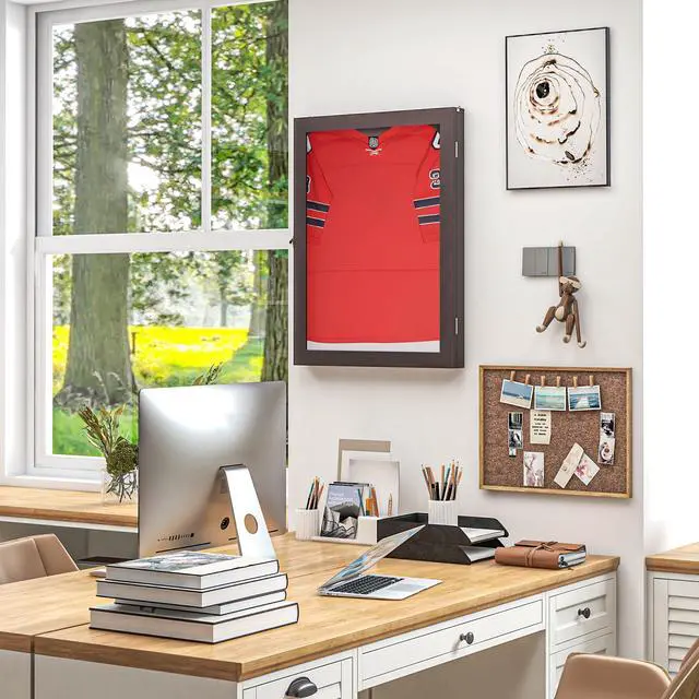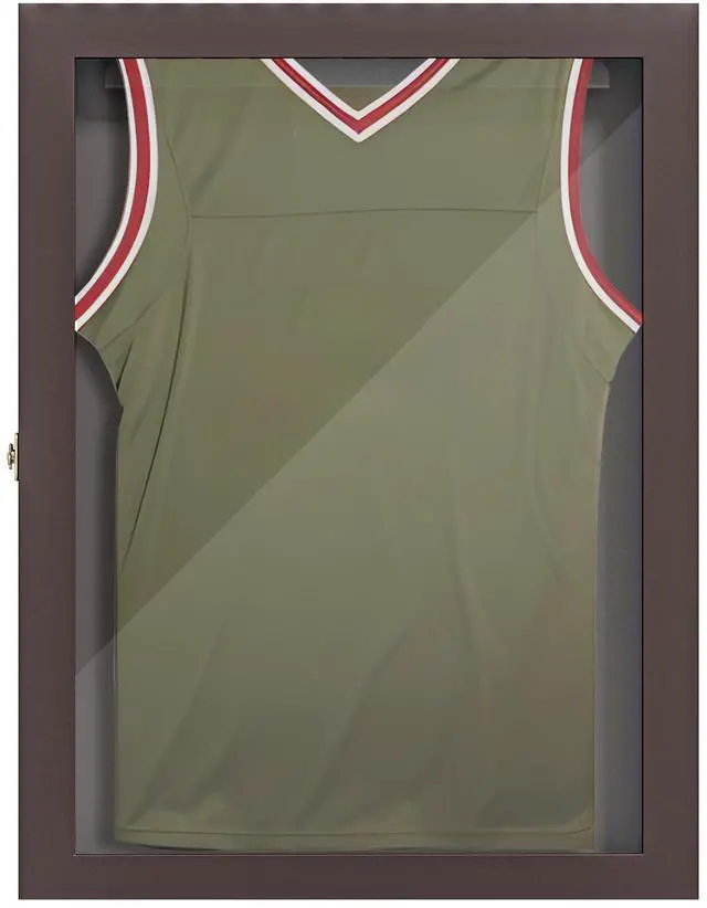 The Aosom jersey display case stores and displays your prized sports memorabilia. Our display case offers an elegant and attractive appearance without sacrificing protection. It features an acrylic door with two built-in magnets and a lockable latch. This door seals items in, keeping dust away and protecting against harmful UV rays when the sun shines on what's inside. With a hanger and brass hooks, it's quick and easy to display your favorite sports memorabilia right out of the box.