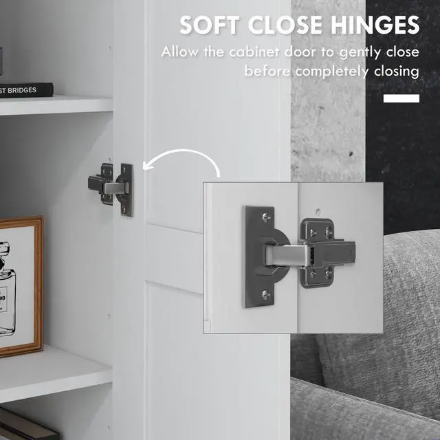 - - Features soft close hinges, allows the cabinet door to gently close before completely closing