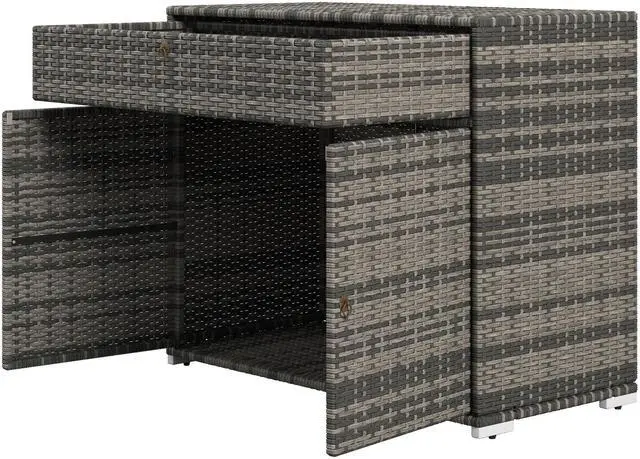 - - It features a drawer and a two-door cabinet for organized outdoor storage