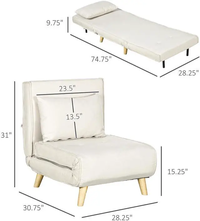 The Aosom convertible chair bed effortlessly combines style and function. With its simple design and neutral upholstery, this sleeper sofa complements any decor. It transforms from a chic chair to a cozy bed, which is great for small spaces. Have an extra seat for family or friends, and extend this sofa bed to create a comfortable spot for a sleepover or just a quick nap. Make your house feel like home with Aosom.