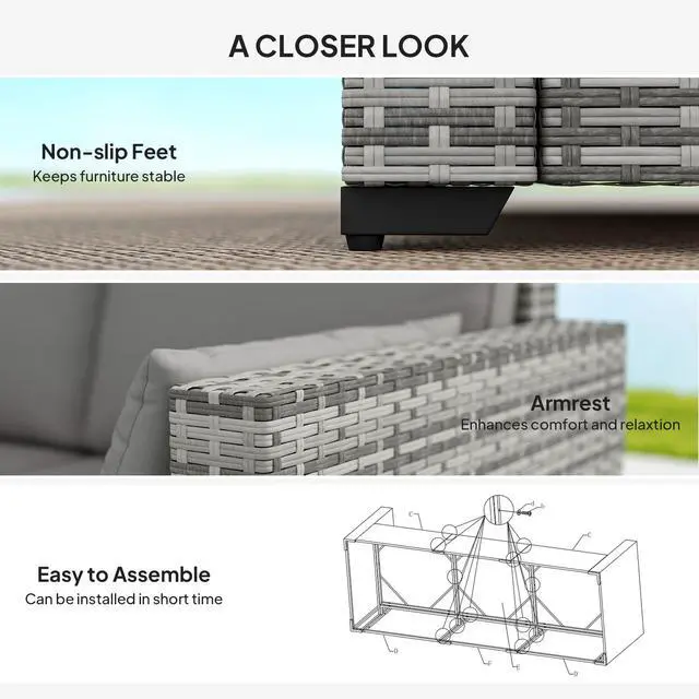 - - Materials: Galvanized Steel, PE Rattan, Polyester