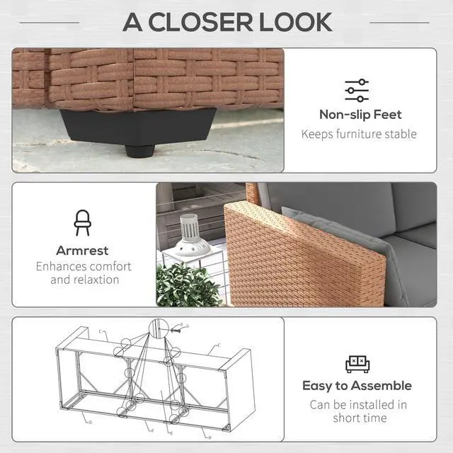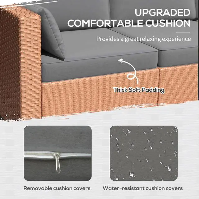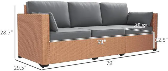 Aosom offers a 3-seat sofa for the outdoors. It's hand-woven with PE rattan, giving it a classic wicker style with a more weather-ready build. Invite over friends; this couch features a water-safe galvanized steel frame that holds up to 792 lbs. Our outdoor sofa's seats, back, and armrests all come cushioned, wrapping each person all around in plush comfort. Decorative yet soft, you can have a place to sit on your porch, patio, or poolside year-round. Get out, get comfy, get Aosom.