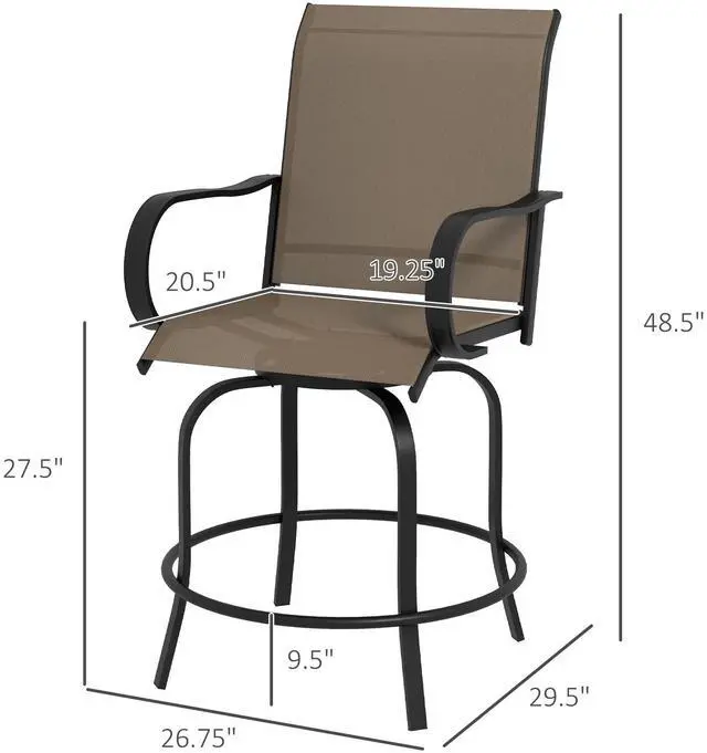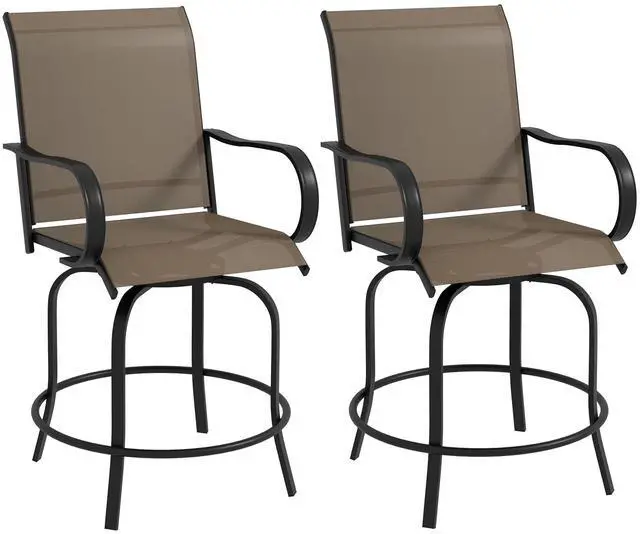 Every hour can be happy when you have the fun and function of outdoor barstools. Aosom offers a set of two barstools with arms that can swivel a full 360 degrees. Our outdoor chairs won't let your legs dangling, they offer ergonomic footrests at just the right height, and speaking of our stools are an excellent match for any bar height table you may have. They're breathable for the summer, offer supportive backrests, and come in a variety of colors. Get out, get comfy, get Aosom.