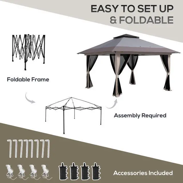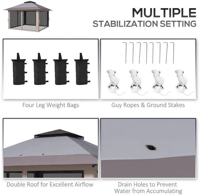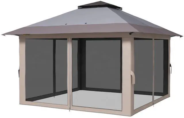 Whether it's a camping trip, cookout, or just a place to protect your outdoor couch, Aosom's pop-up gazebos go up in minutes. Coming with a carrying bag, they roll wherever you want. They unfold fast to provide UV50+ protection. Stakes, ropes, and sandbags work together to stabilize your outdoor canopy tent on soft ground, and holes on top drain away rain in case it isn't taken down on time. With mesh walls on the sides, you can enjoy the breeze while guests with wings are uninvited.