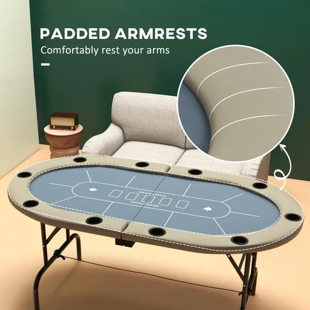 Challenge friends to exciting poker tournaments with a Soozier professional poker table. Its quality feel will have you and your buddies playing long into the night. With an extra-large design for 8 players, everyone can comfortably take part in the action. Cup holders and padded armrests make our poker table set promote long-lasting gaming. This foldable felt game table compacts down and stores for travel. Recreate the Vegas experience at home or anywhere you go when Soozier is your partner.