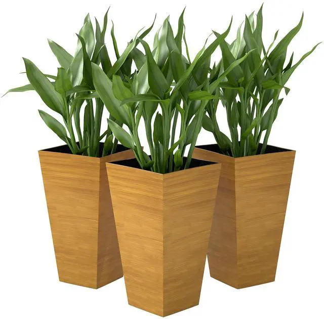 Landscaping is easy with the right supplies by your side. Aosom's outdoor planter set gives the depth you need to grow long roots without taking up extra room when it's time to store for the season. Grow flowers, herbs, shrubs, ferns, or a ficus. Our tall planter set is self-draining, so water logging won't be a worry. They're stackable to keep compact when not in use. Featuring a modern shape with a wood grain look, their material doesn't saturate to endure the outdoors season after season.