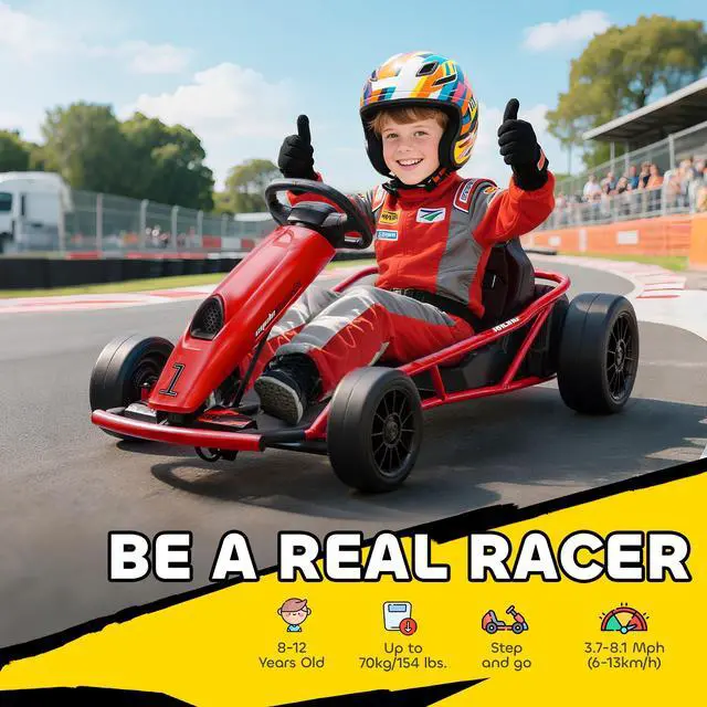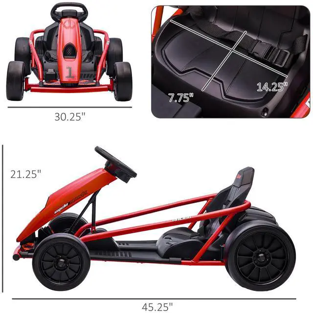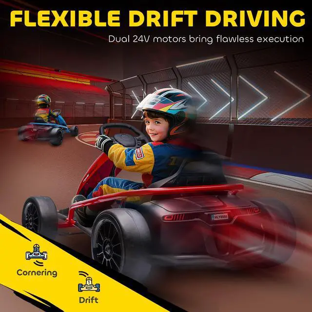 Ignite outdoor excitement with our Aosom electric drift go-kart. Your young speedster will have the thrill of a lifetime as they drift and race around. Equipped with a powerful 24V dual-drive motor, they'll conquer speeds up to 8.1 mph. Let them get in the zone during every ride with built-in music and a realistic horn. Elevate playtime with a ride-on experience that keeps the excitement alive.