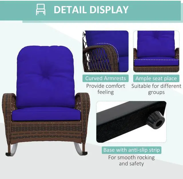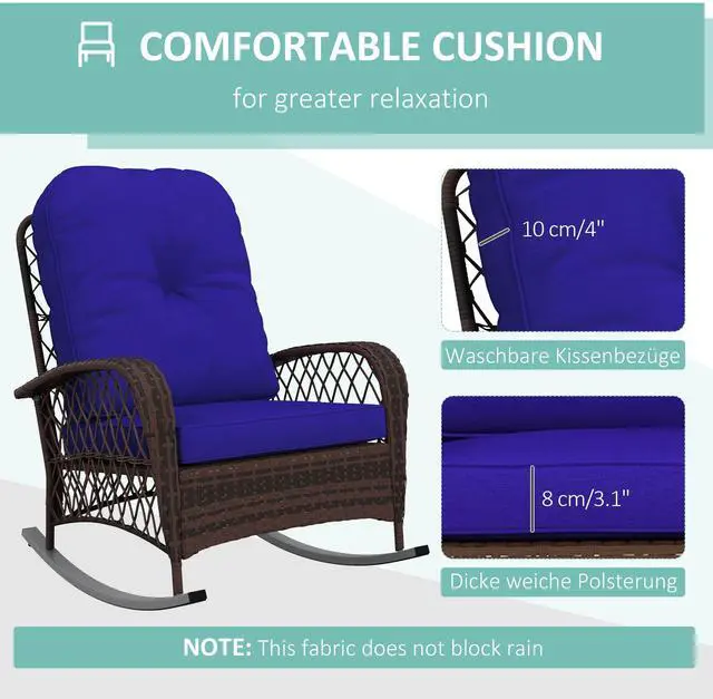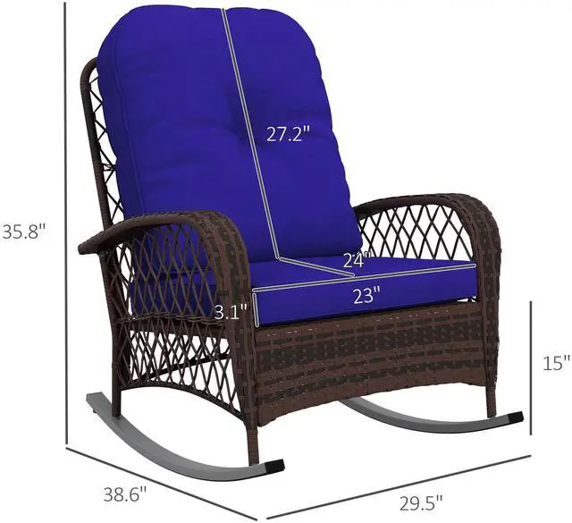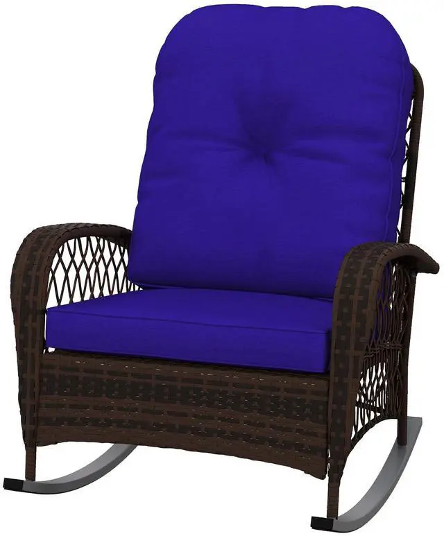 • Aosom Rattan Porch Rocker w/ Plush Cushion, Dark Blue