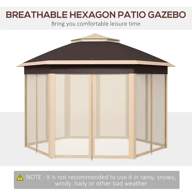 - - Hexagon hot tent with 6 mesh sidewalls for patio, deck, or garden